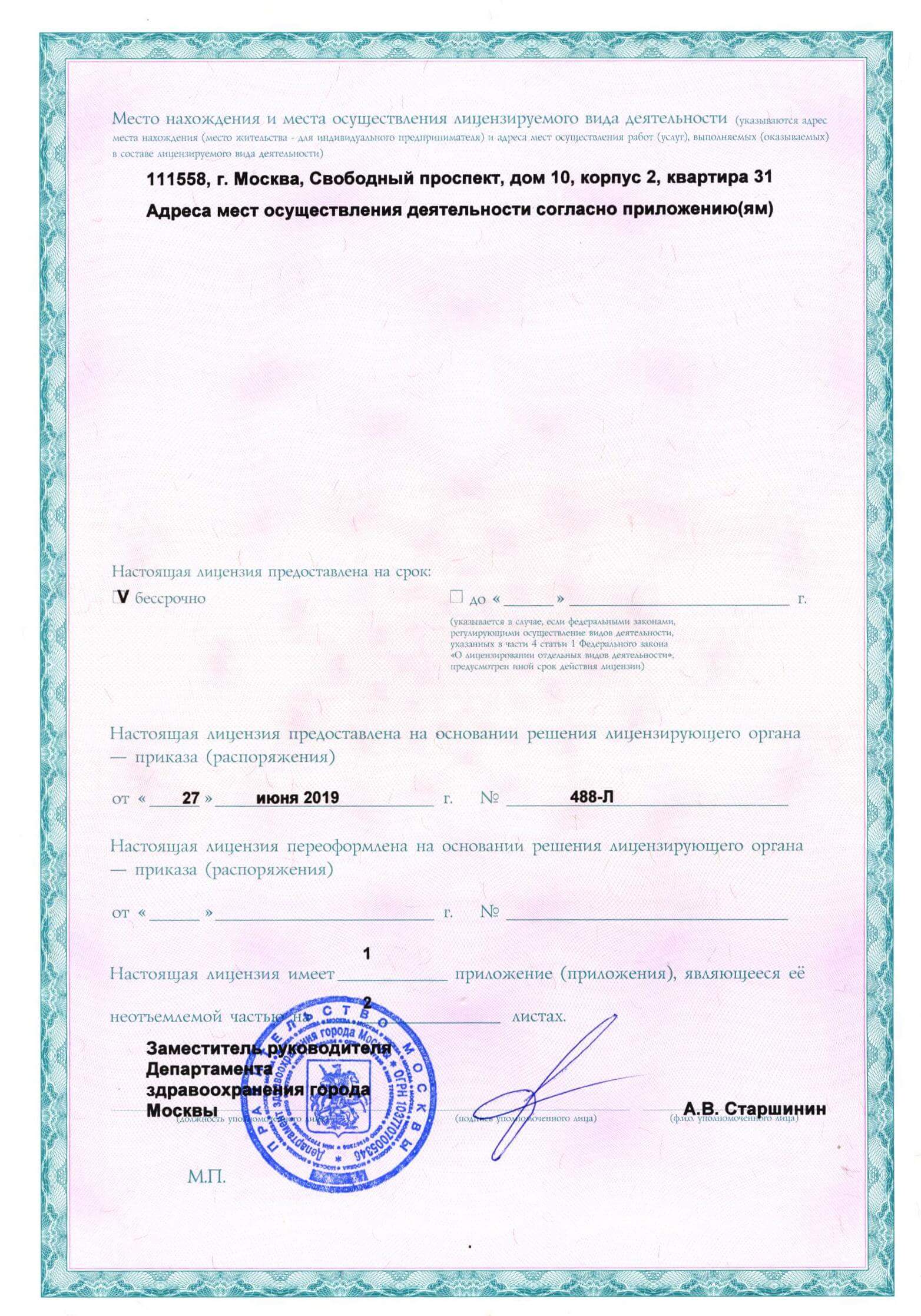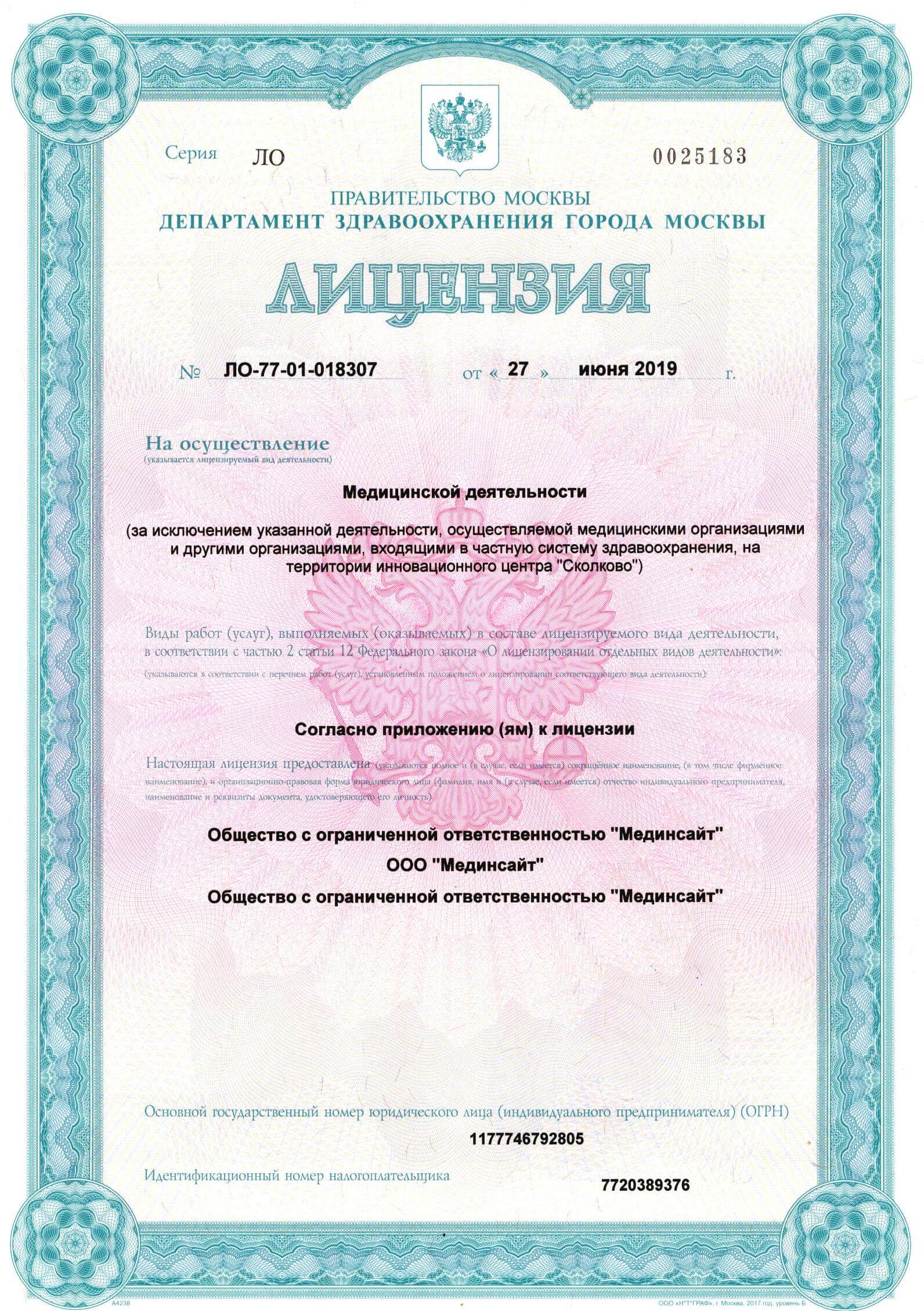 Лицензия № ЛО-77-01-018307 от 27 июня 2019 года